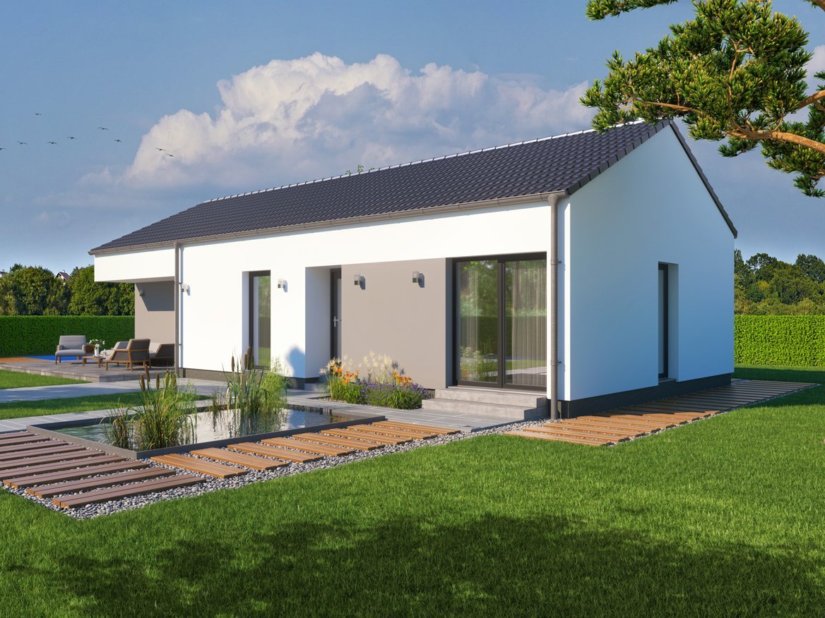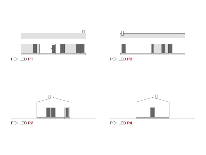 Kompaktní, moderní, 4pokojový dům typu bungalov se sedlovou střechou. Zajímavým a zároveň praktickým prvkem je terasa chráněná ustupující hmotou domu a zapuštěný vchod.