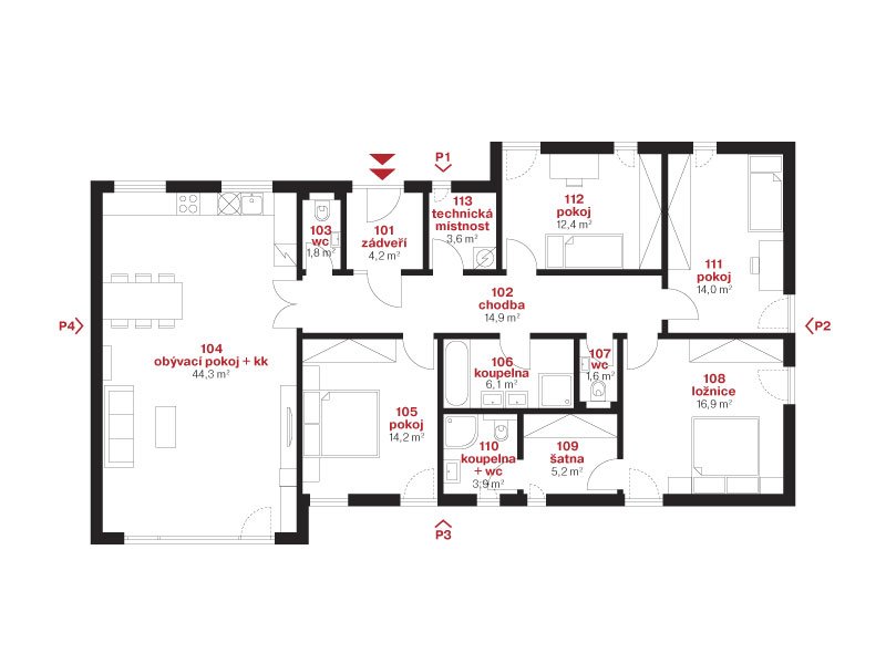 Rozvržení dispozice domu je plně v režii klienta.