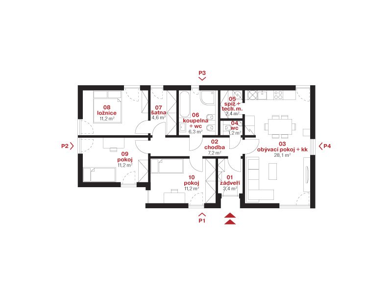Dům splňuje všechny požadavky energeticky úsporné stavby. Na vytápění tak ročně ušetříte až desítky tisíc korun!