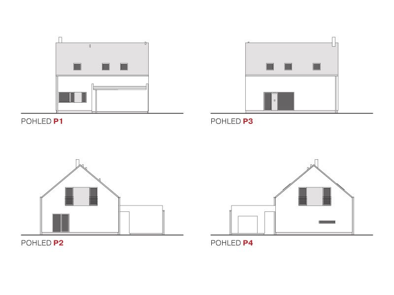 Jednoduchý, praktický, rodinný dům se sedlovou střechou a obytným podkrovím. Součástí domu je garáž.