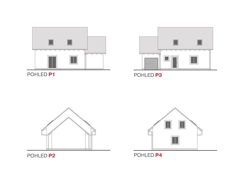 Kompaktní, patrový rodinný dům se sedlovou střechou a obytným podkrovím.