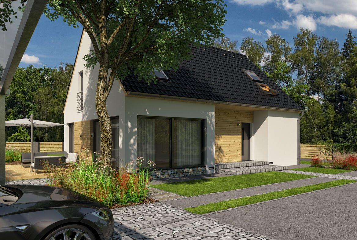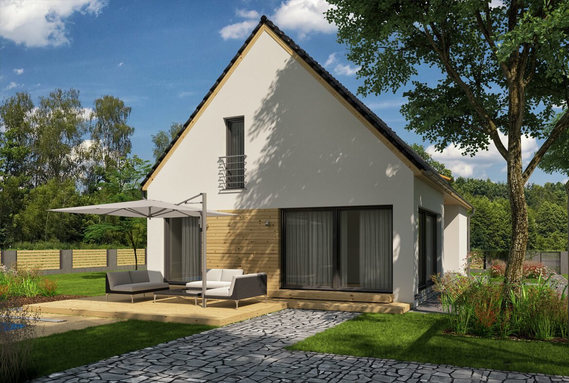 Kompaktní, moderní, 5pokojový rodinný dům s obytným podkrovím. Dům je ideální pro komfortní bydlení rodiny se 2-3 dětmi.