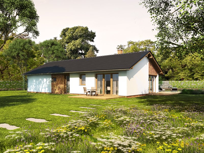 Jednoduchý, středně velký bungalov klasického tvaru se sedlovou střechou. Dům je ideální pro pohodlné bydlení 4členné rodiny.