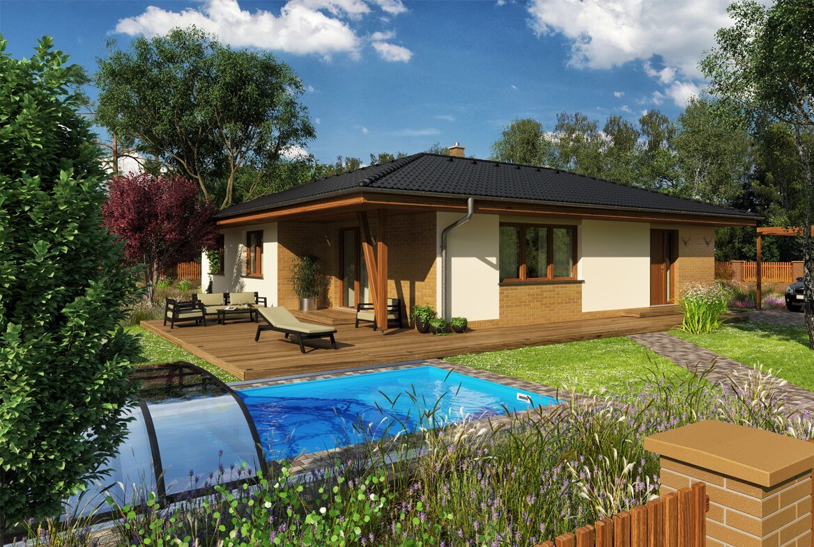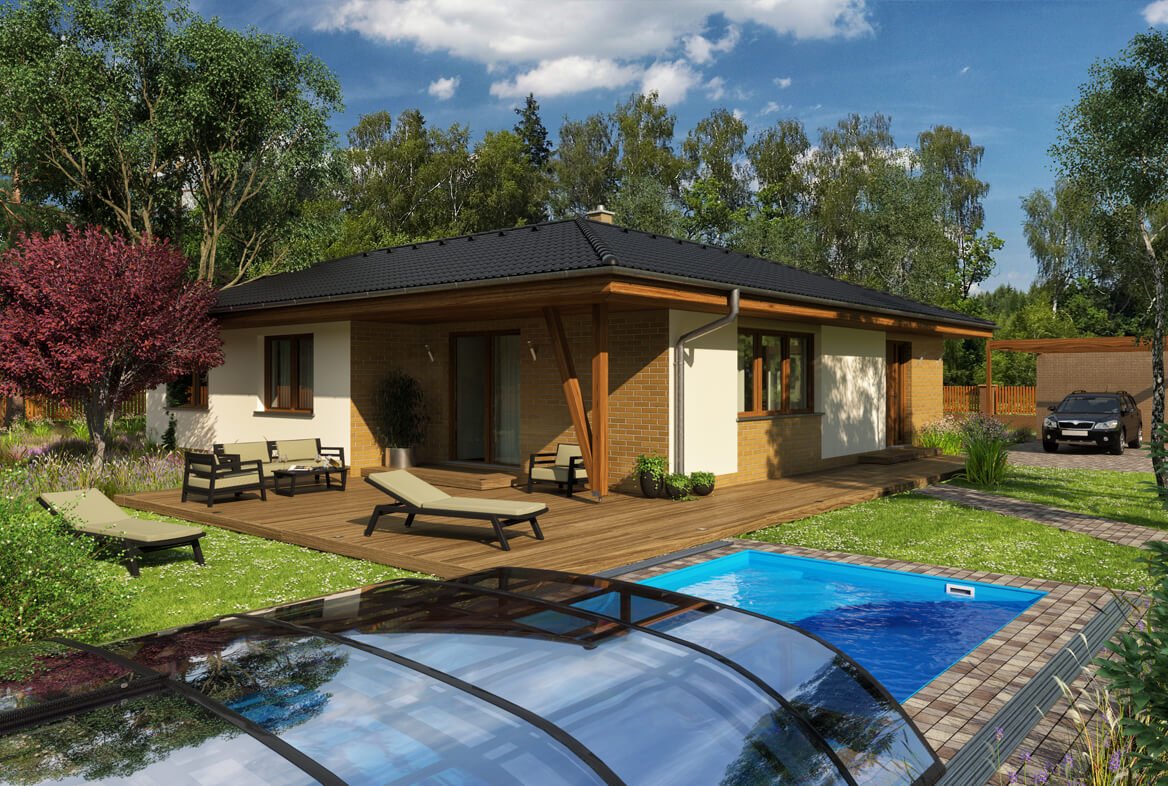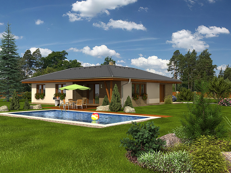 Klasický, středně velký, 5pokojový bungalov, ideální pro pohodlné bydlení 4 až 5členné rodiny.