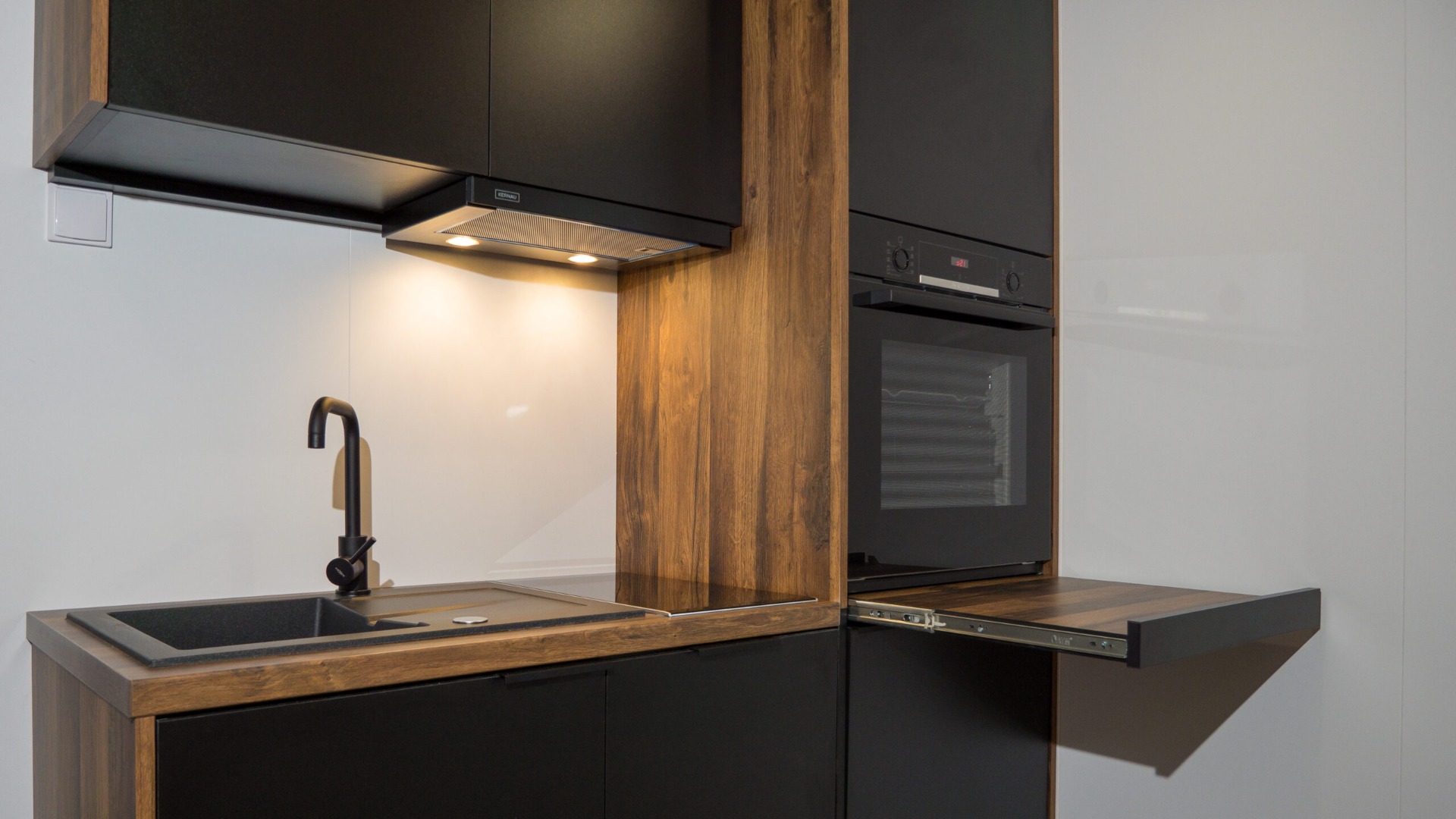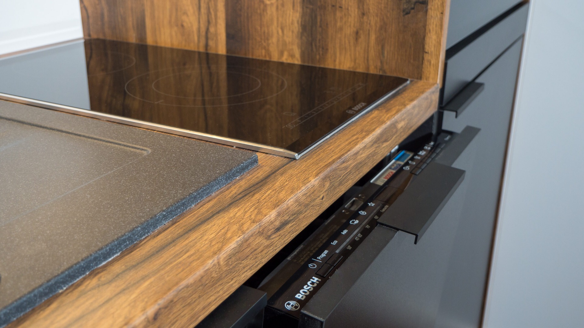 Dům je dodáván včetně kuchyně kompletně vybavené kvalitními spotřebiči od renomovaných výrobců BOSCH a Whirlpool.