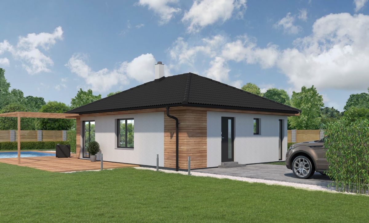 Ekonomický, 3pokojový bungalov s efektivně využitým půdorysem. Jednoduchá konstrukce domu je zárukou rychlé a bezproblémové výstavby.