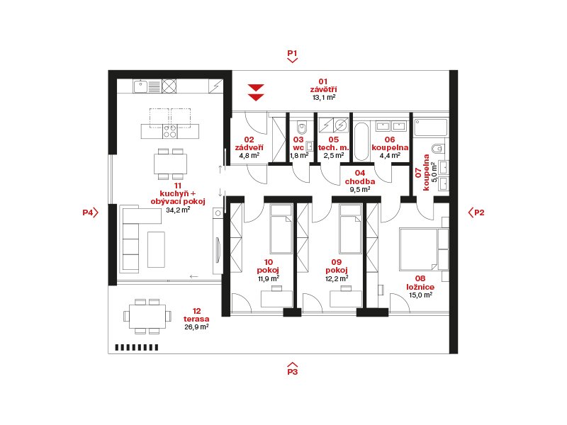 Rozvržení dispozice domu je plně v režii klienta.