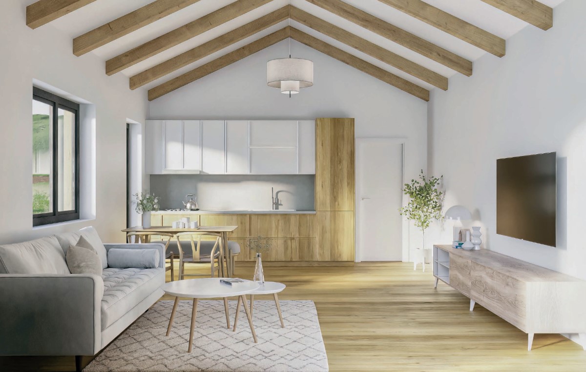 Výchozí modul kategorie 1kk lze později rozšiřovat o další moduly - např. modul ložnice, modul dětský pokoj, ale také modul terasa nebo modul garáž.