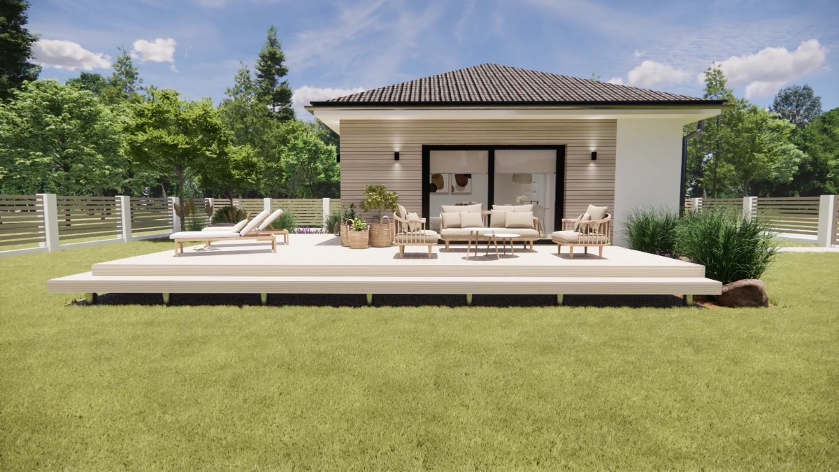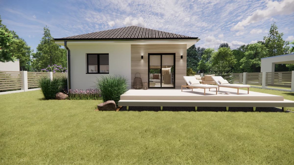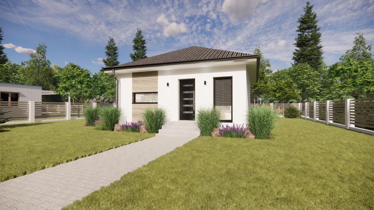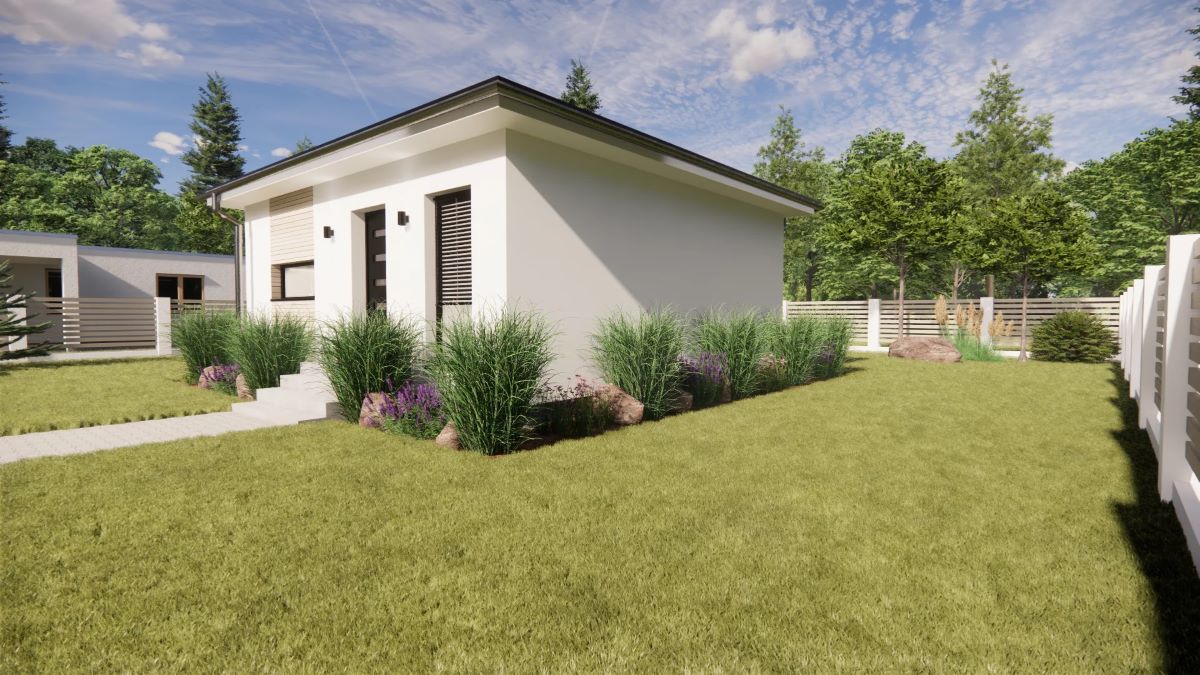 Malý, kompaktní bungalov dispozice 2kk s čtvercovým půdorysem, který může být využit jako rekreační objekt, stejně tak jako dům k trvalému bydlení.