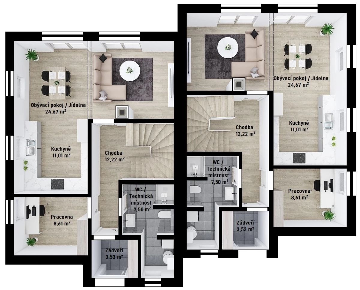 Dvojdomy jsou ideální volbou pro vícegenerační bydlení nebo jako bezpečná investice v případě, že budete jeden z domů pronajímat.
