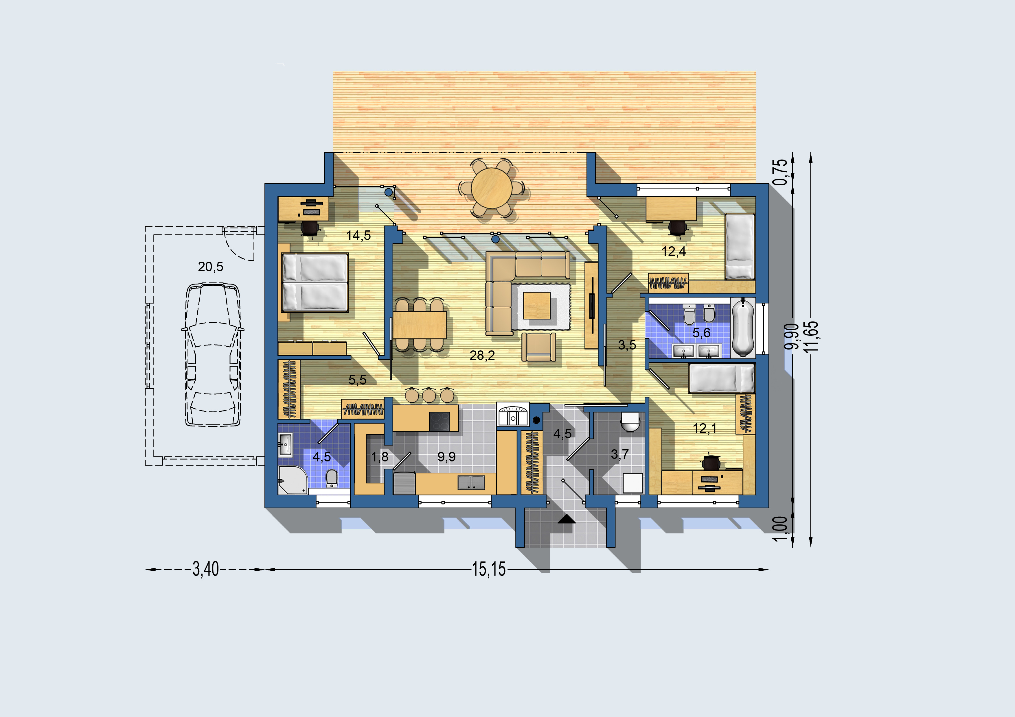 15,15 x 9,90 m