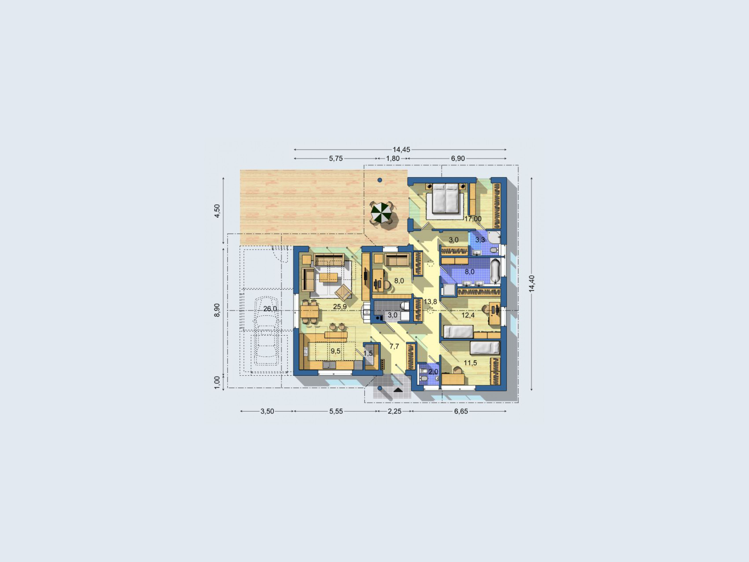 14,45 x 14,40 m