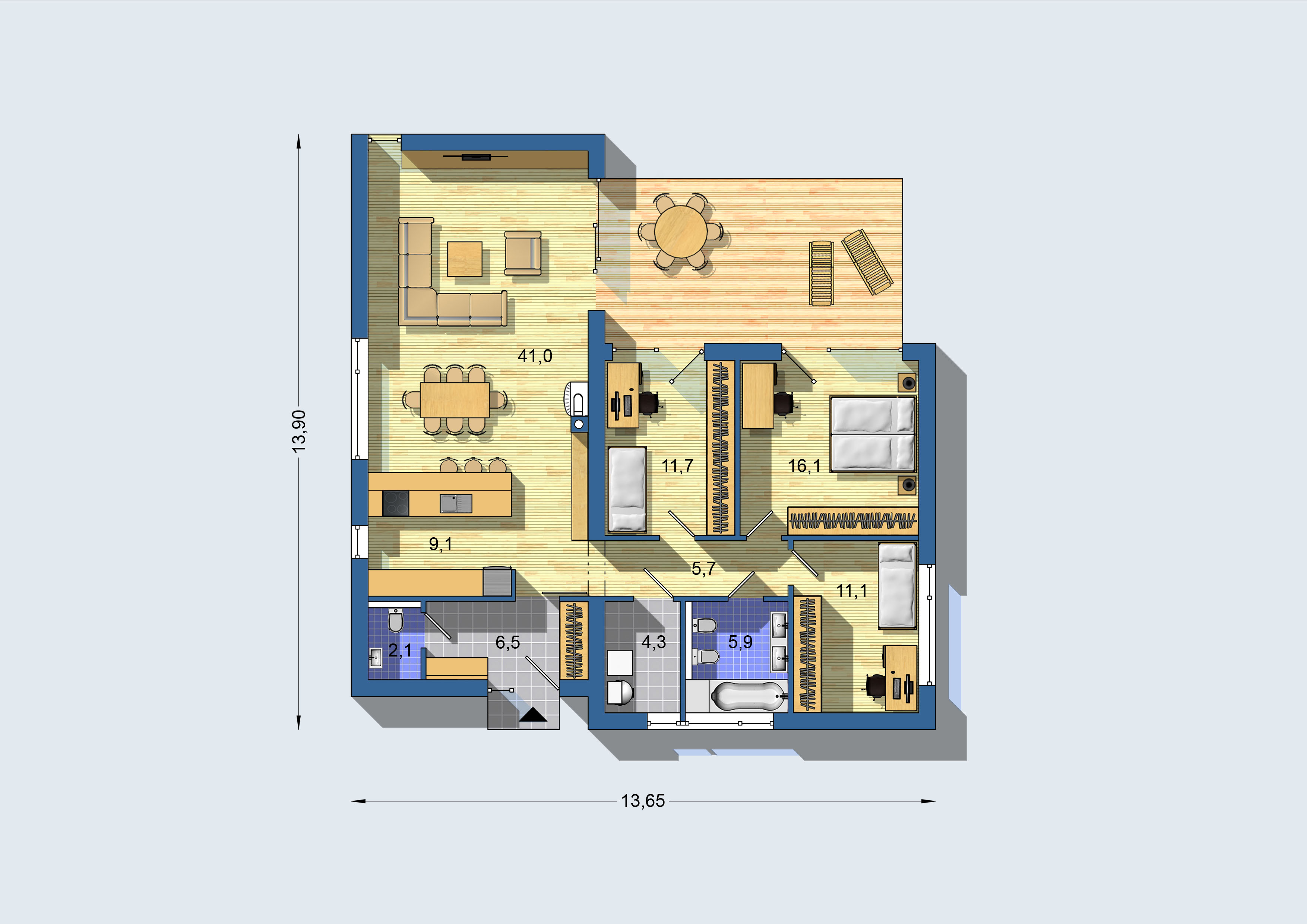 13,90 x 13,65 m