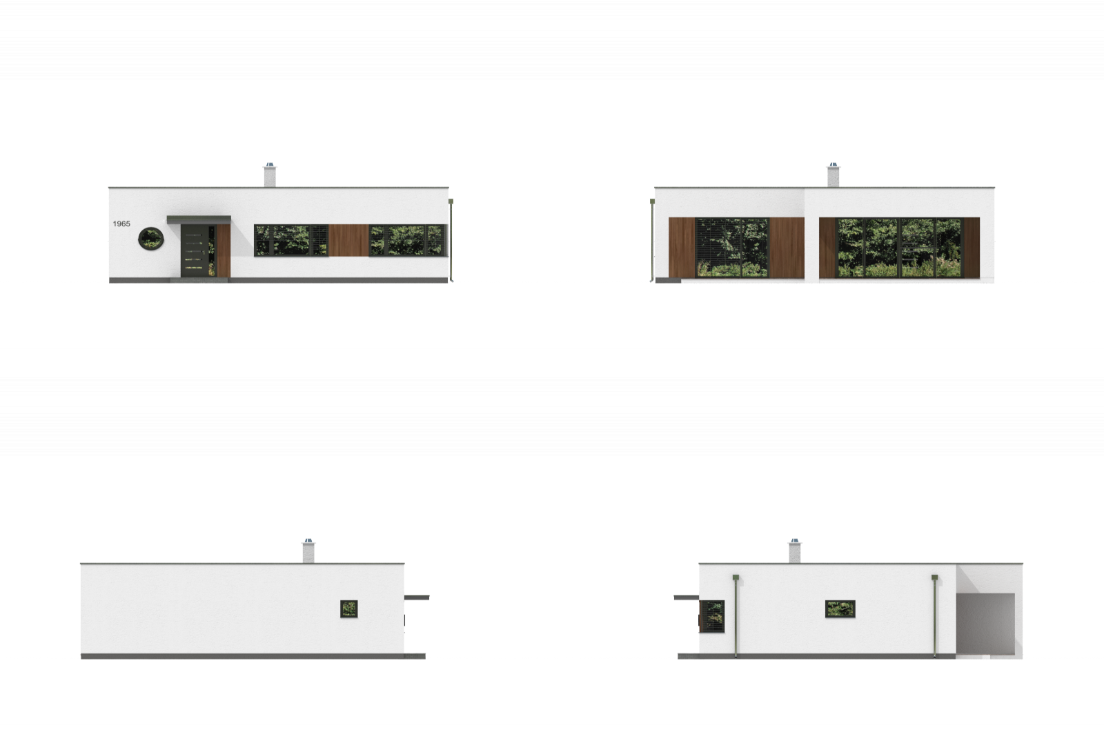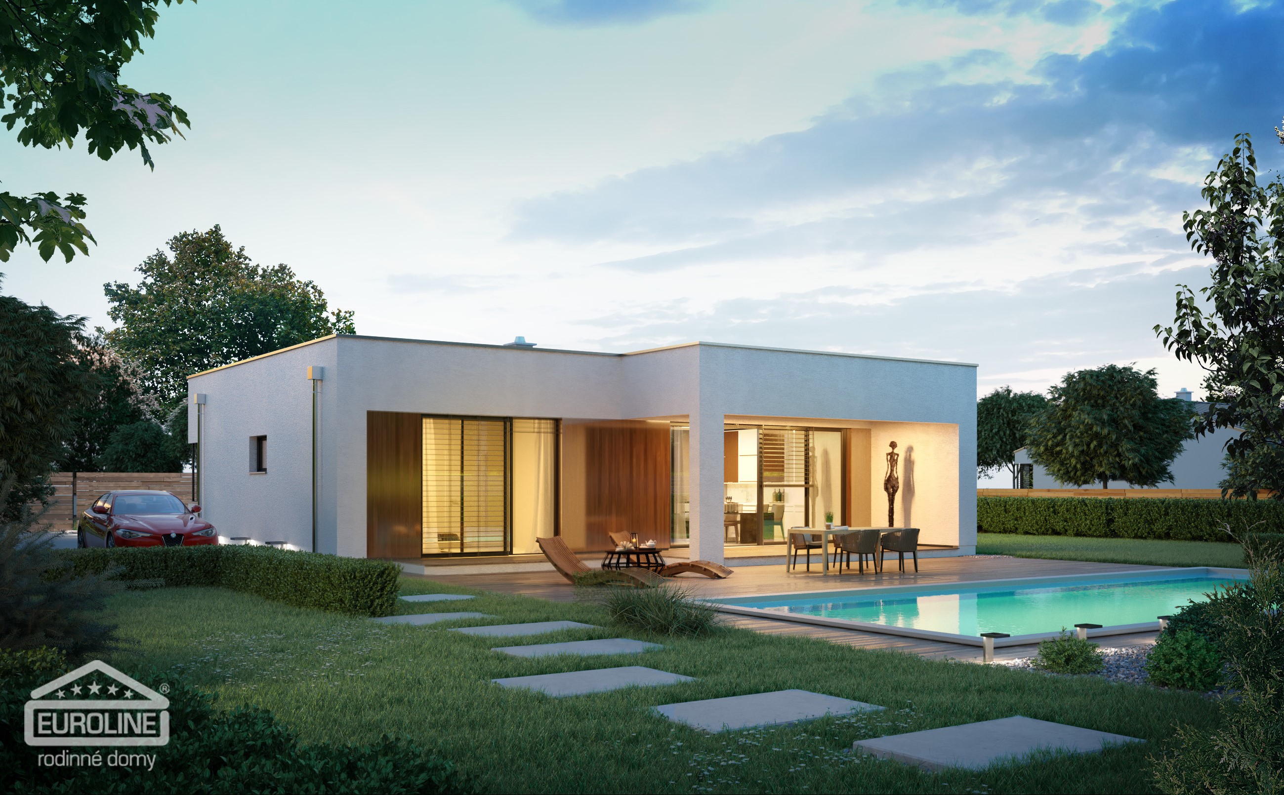 Moderní, přízemní rodinný dům s plochou střechou a efektivně využitým vnitřním prostorem s minimalizací chodeb. Dům je ideální pro pohodlné bydlení 4členné rodiny. Architektonicky zajímavým a zároveň praktickým prvkem je velká terasa krytá přesahem střechy. Výhodou je technicky a finančně nenáročná výstavba.
