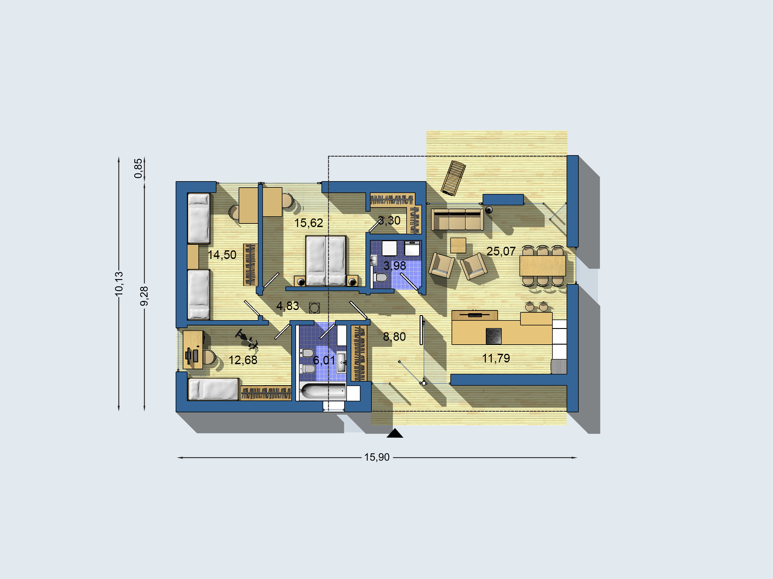 15,90 x 10,13 m