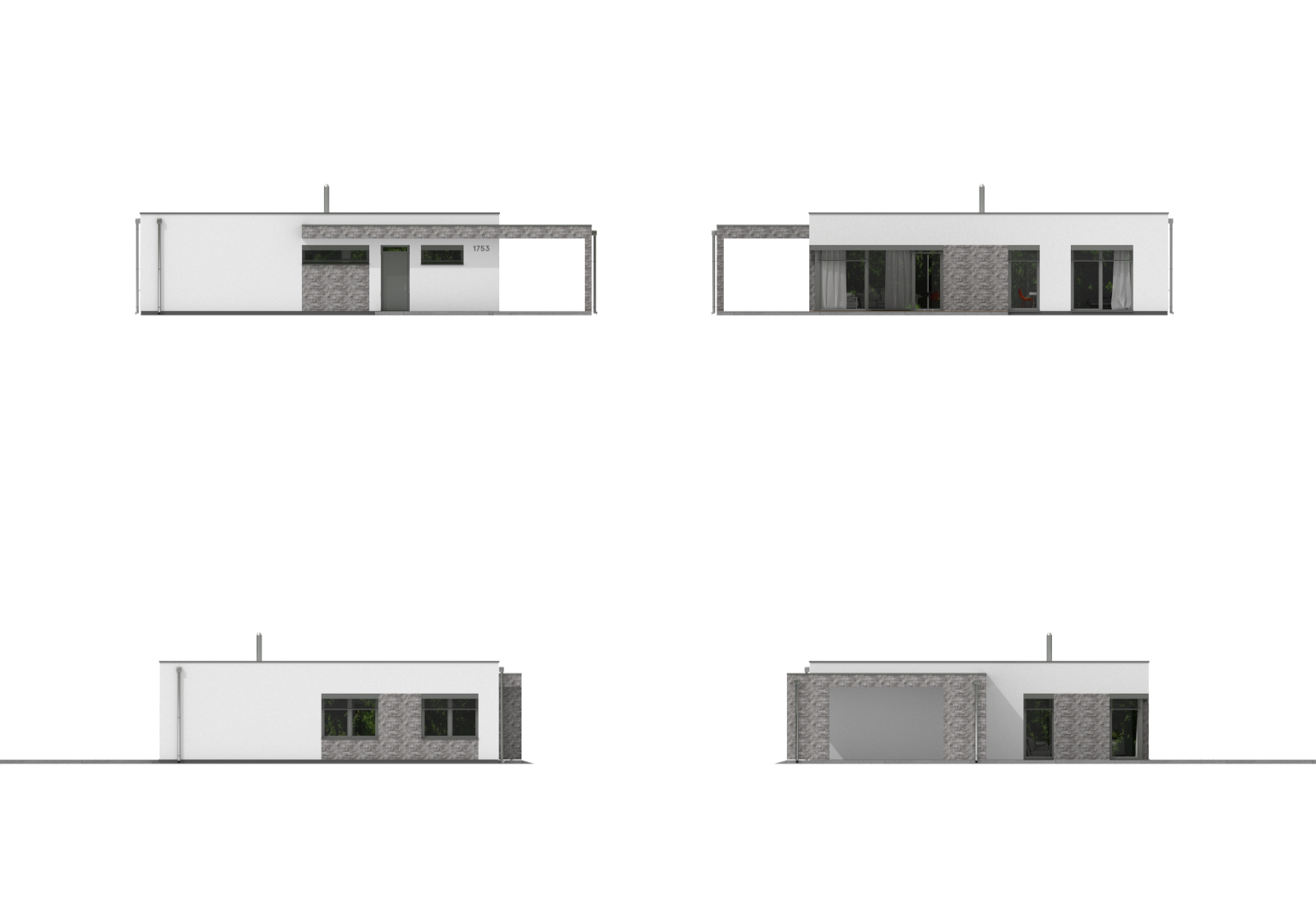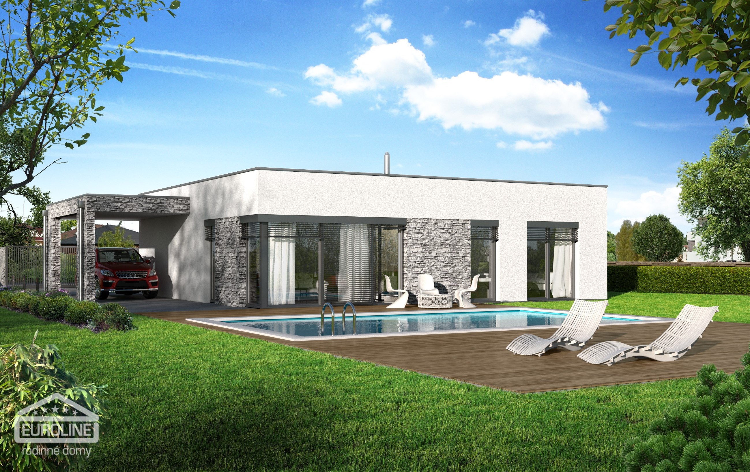 Kompaktní, jednoduchý dům s plochou střechou a moderním designem. Dům je ideální pro bydlení rodiny se 2 dětmi.